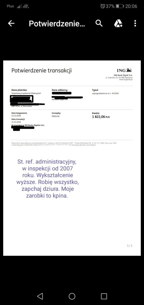 Jak wspominaliśmy we wcześniejszym wpisie, ruszyliśmy z akcją #naszeZarobkiToKpina , będziemy upubliczniać jakie wynagrodzenia są w Inspekcji Weterynaryjnej.